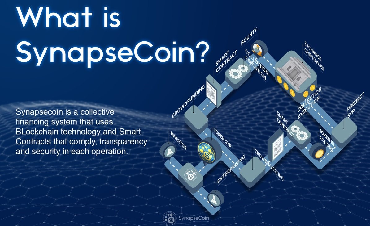 The Blockchain technology is an example of technological advances of our age and has allowed connect thousands of people worldwide, giving them the opportunity to achieve financial growth and over the years had been develop new systems as The Crowdfunding based on Blockchain technology which solves the problems of traditional Crowdfounds. Thanksfulness to the Blockchain technology and crowdfunding system, Synapsecoin is able to offer advanced solutions to different problems, such as the lack of liquidity of hundreds of entrepreneurs in the world, who seek answers in projects through crowdfunding by connecting them with investors..